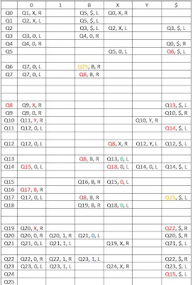 | Q22 | Q22, 0, R | Q22, 1, R | Q23, 1, L | | | Q22, $, R |